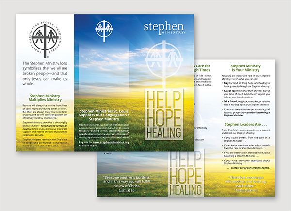 These full-color Help, Hope, Healing Brochures introduce what Stephen Ministry is, what Stephen Ministers do, and what kind of needs they meet. They also include space to add information about your Stephen Ministry. Handing these brochures out at worship or in other settings can be a great way to get people interested in learning more. Also available pre-folded.
